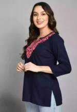Blue Kashmiri Embroidered Short Kurti