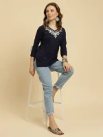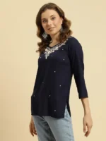 Blue Kashmiri Silk Work Short Kurti