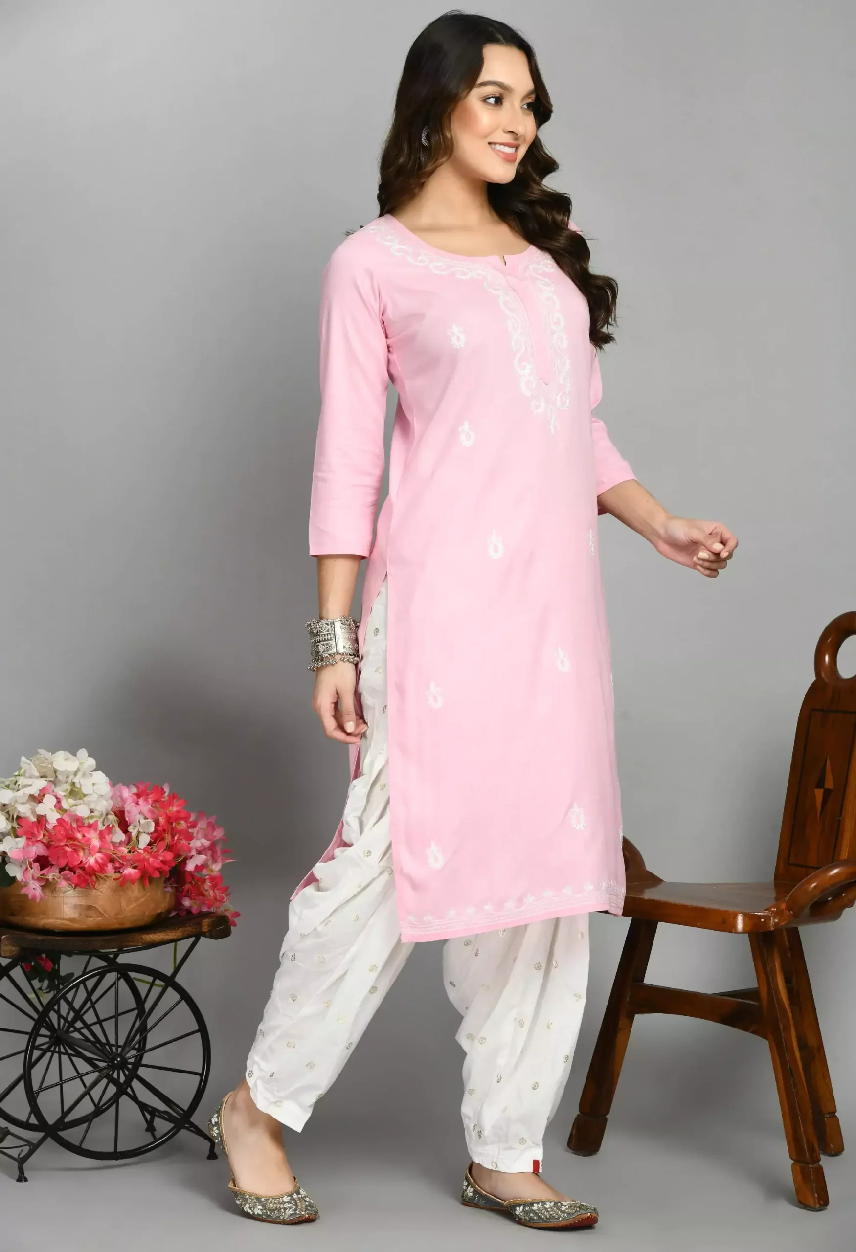 Light Pink Pashmina Work Kurti
