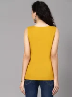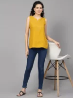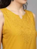 Home Short Kurtis Mustard Self Embroidered Sleeveless Short Kurti