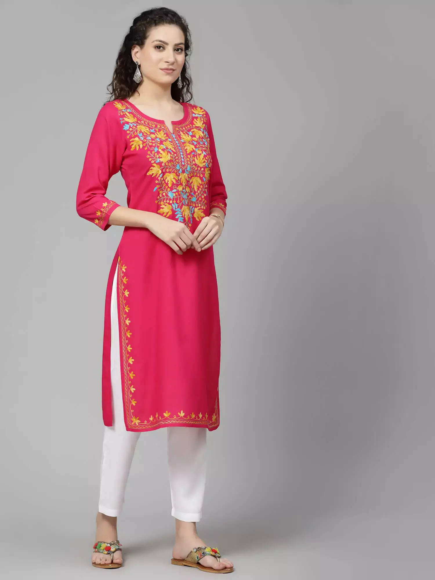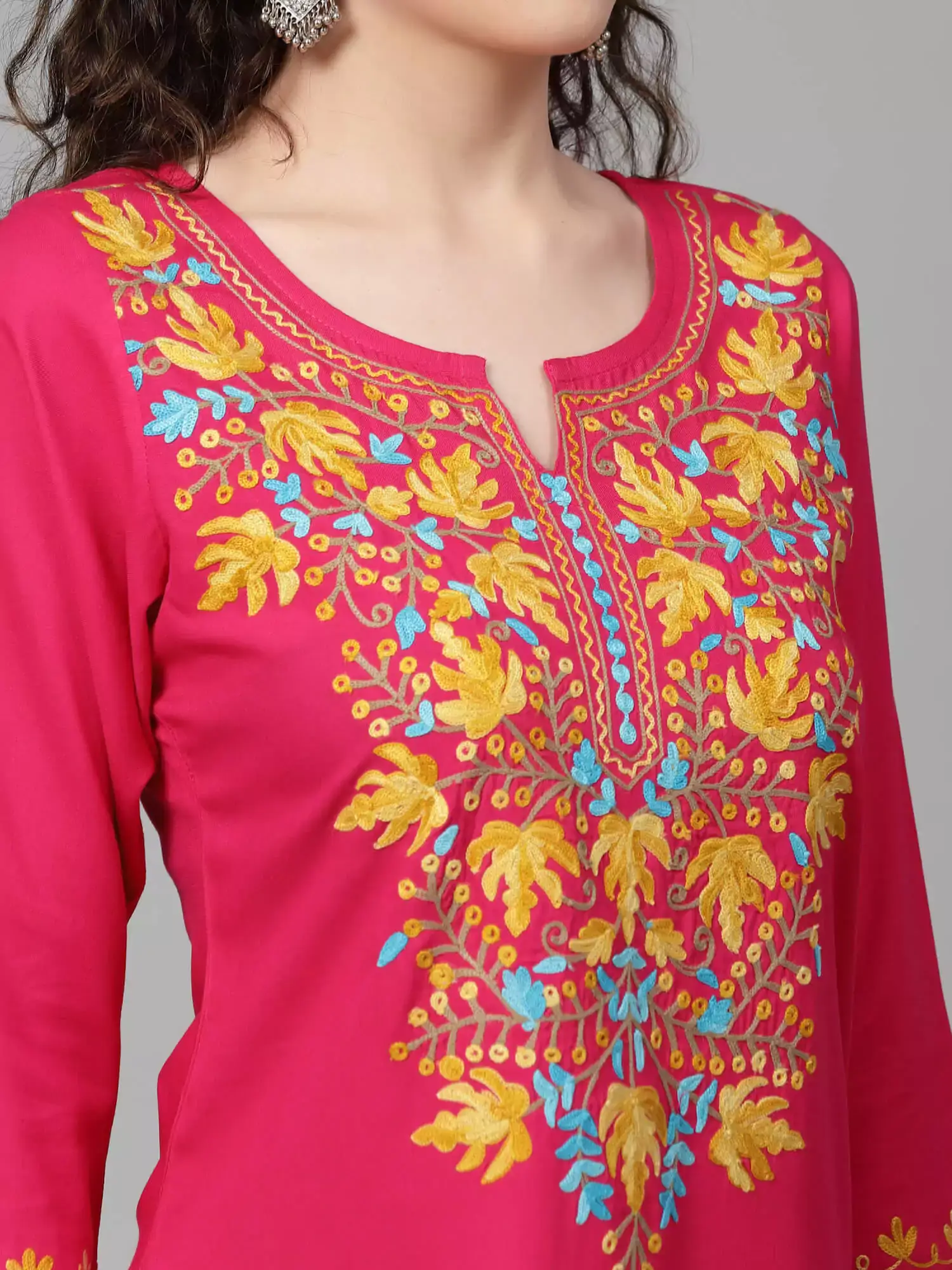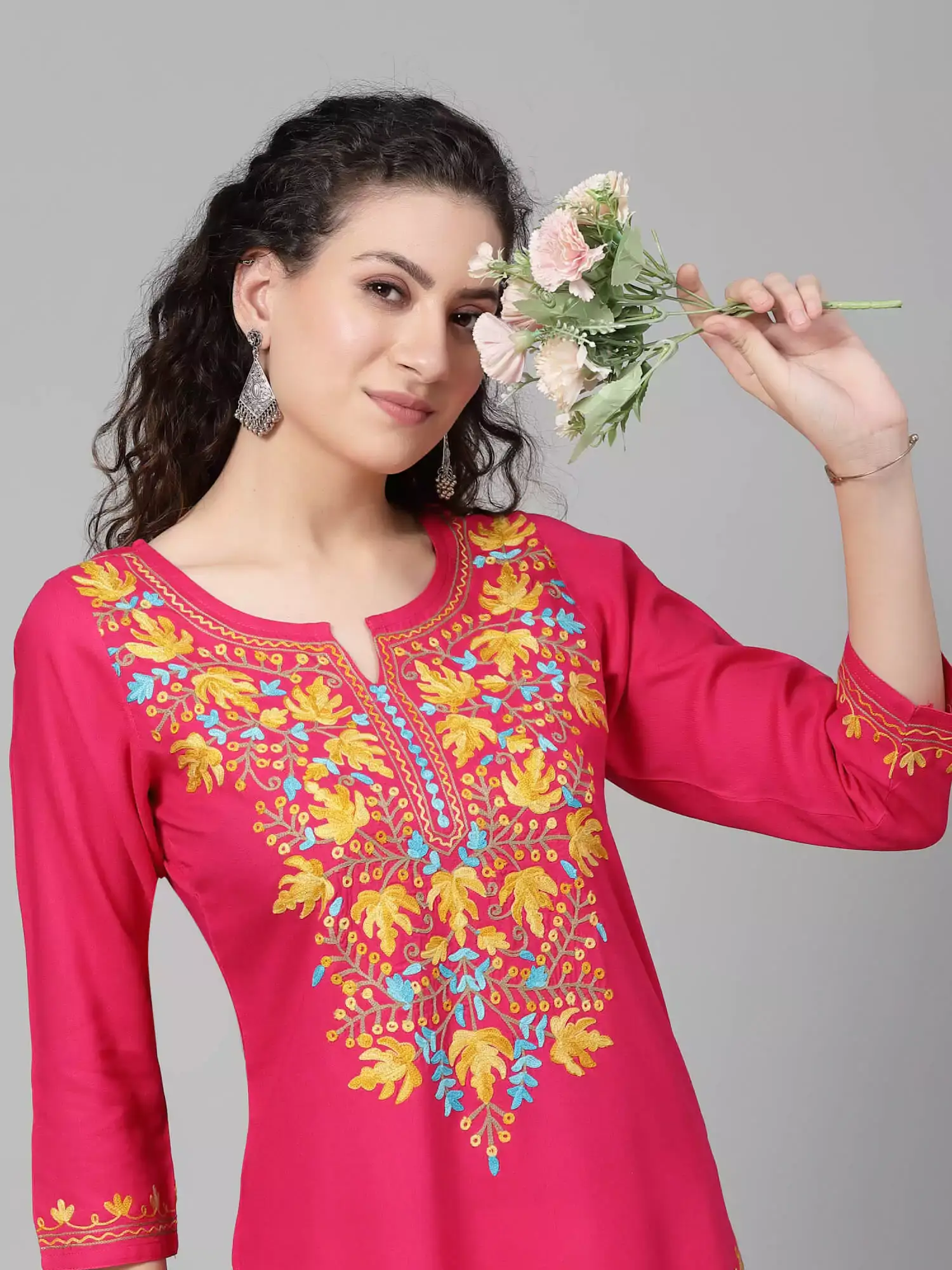 Pink Kashmiri Chinarkari Kurti