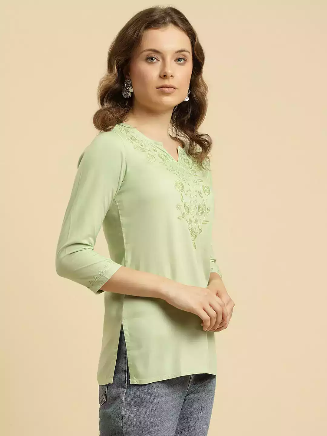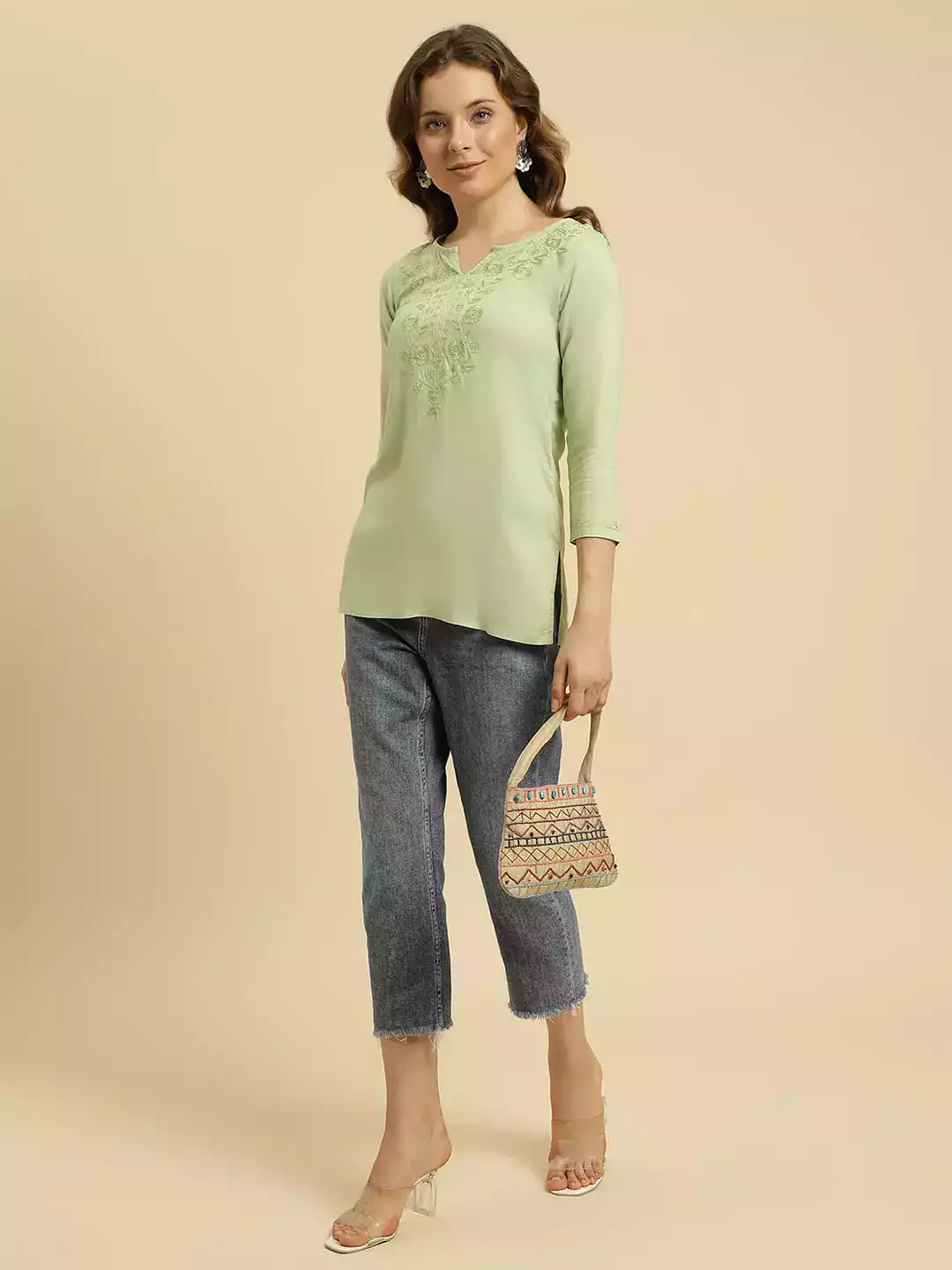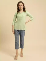Look ethereal in this Aari work Kurti, freshly crafted in the lightness and comfy feel of cotton.