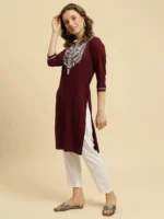 Wine Silk Embroidered Kashmiri Kurti